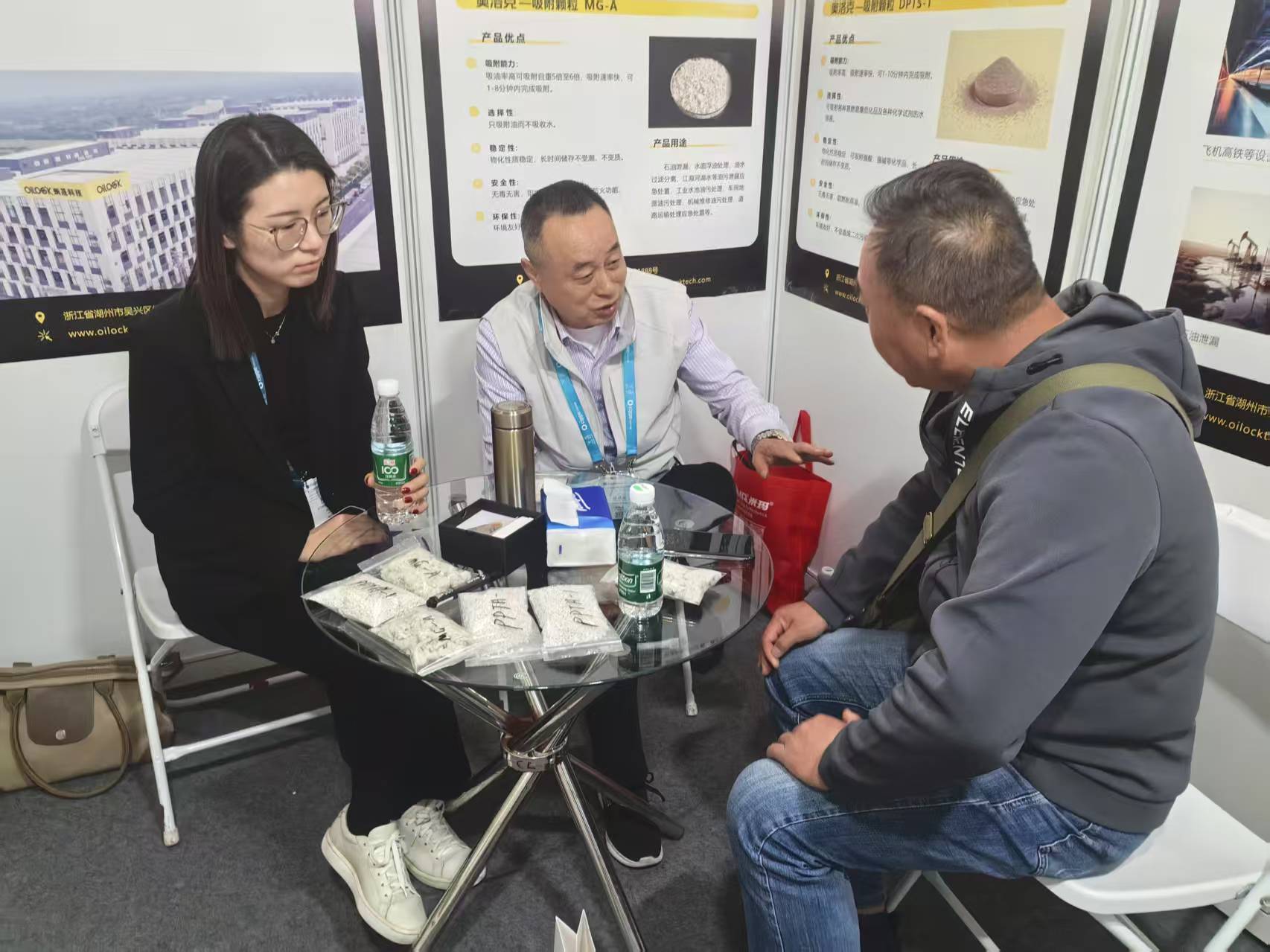 展会上,公司展出的DPTH-A、MG-A、PPTH-1等产品,凭借"吸油不吸水"的独特性能,吸引了包括油田运营商、环保工程商、海事管理部门等在内的专业观众驻足洽谈。